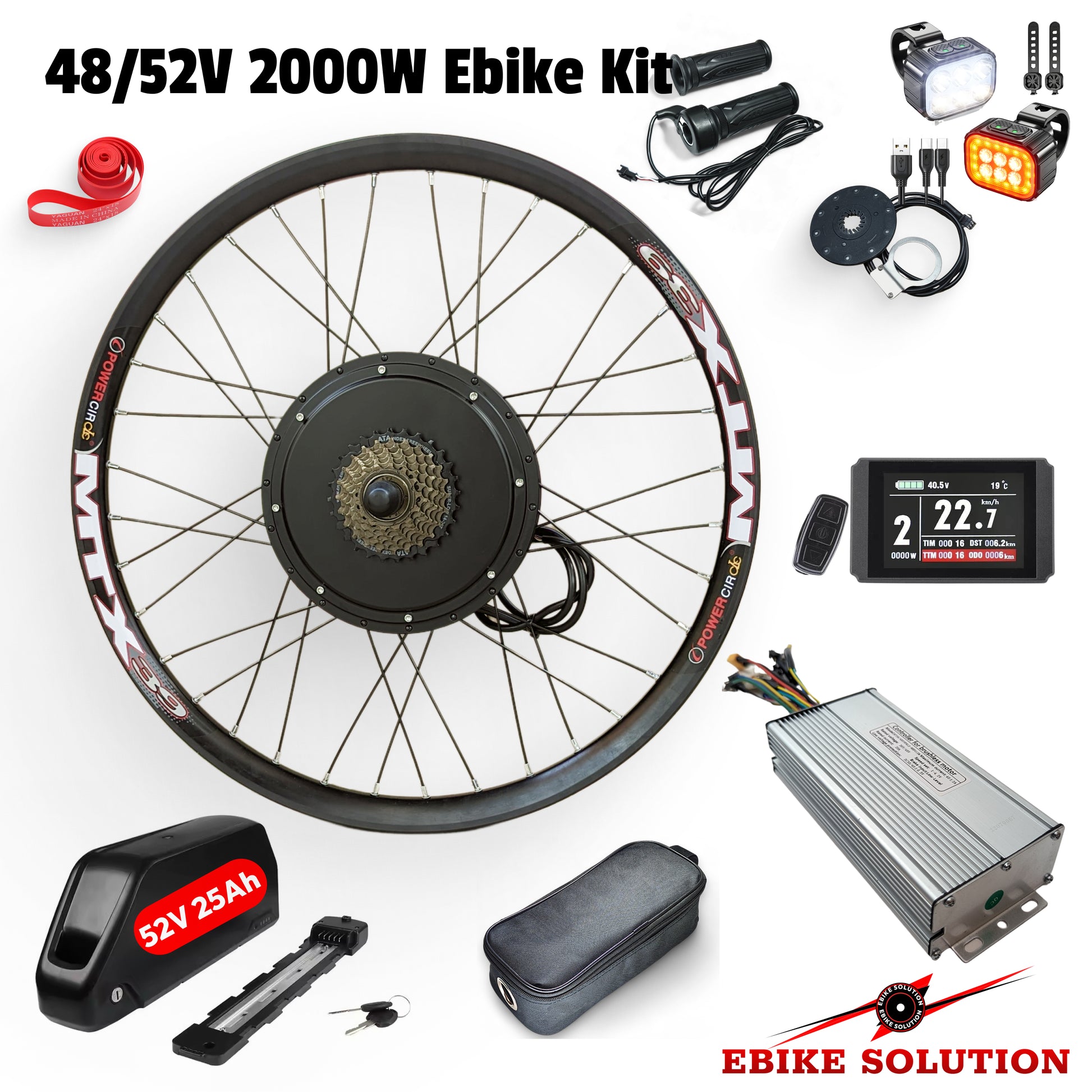 Ebike Kit Rear MTX Wheel Electric Bicycle 48/52V 2000W 40A Colour Display
